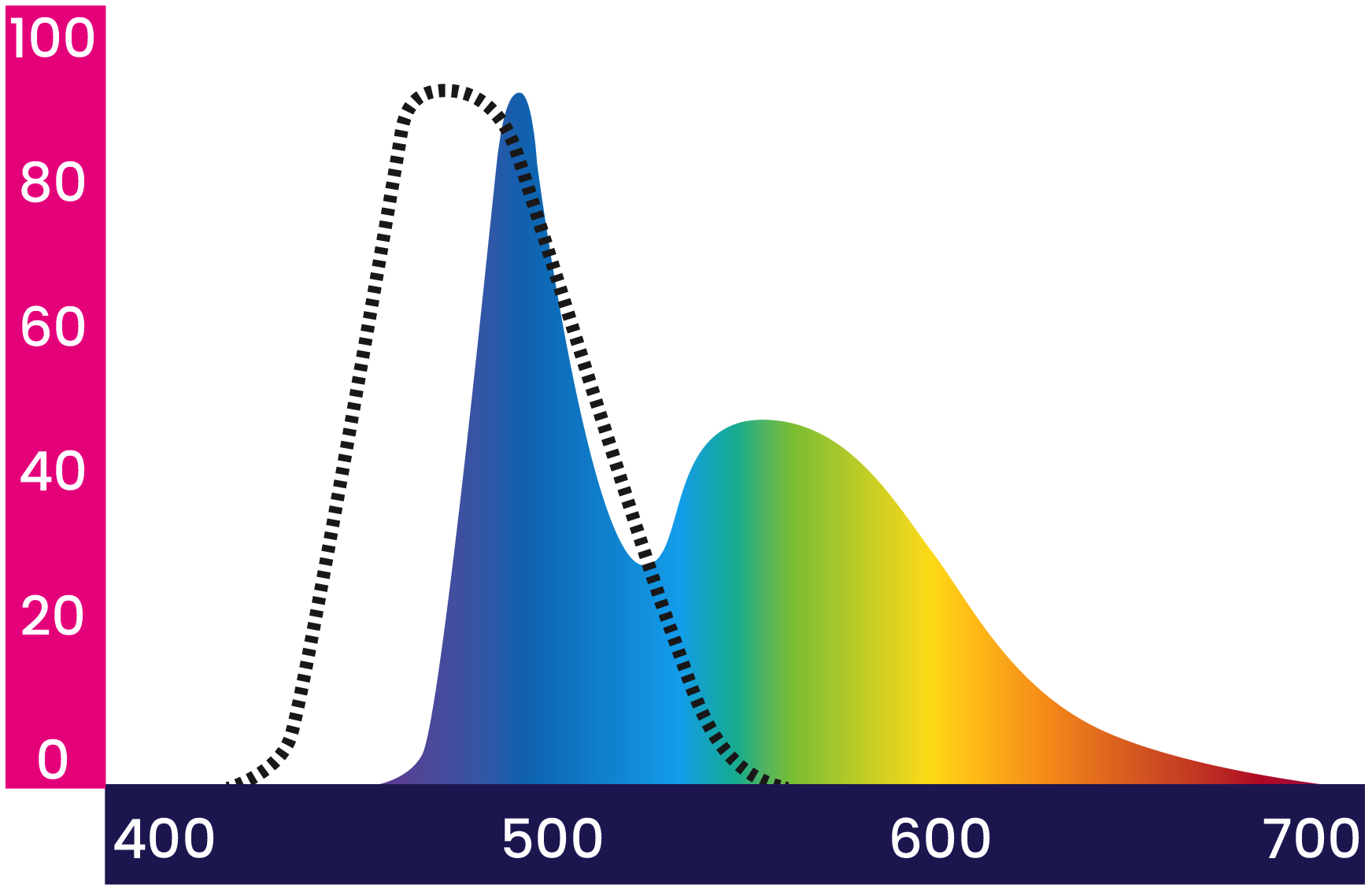 Dairylight delivers an optimized spectrum of light, at the right light intensity to have a maximum effect on the circadian rhythm of a cow by regulating the circulating levels of Melatonin.