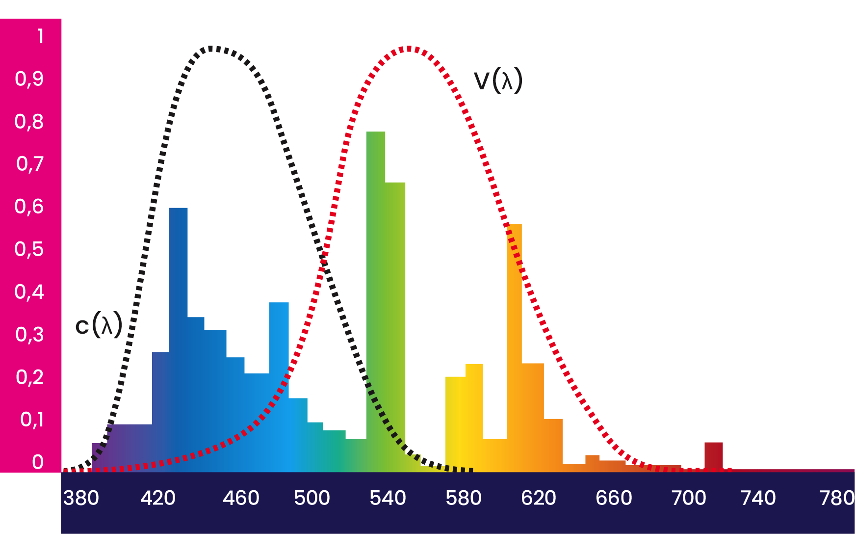 The graph below demonstrates that red light does not affect the Circadian sensitivity and can be turned on at night for supervision and observation.