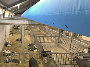 The new ventilation system, which is made by Abbi-Aerotech, is using air tubes. It is specially designed for calves, dairy and young goat farms to avoid any cold draught as well as to realize the optimum ventilation.